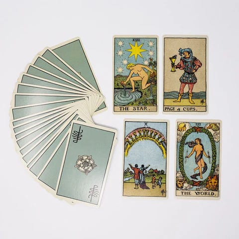While there are a TON of different tarot decks by a ton of different artists, every tarot deck follows the same basic structure: 56 "minor arcana" cards and 22 "major arcana" cards (78 cards total).